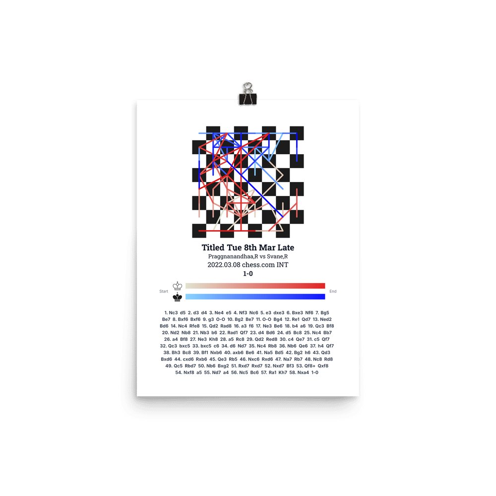 Museum-quality poster on thick, durable matte paper. A sharp, clean look for any chess visualisation.