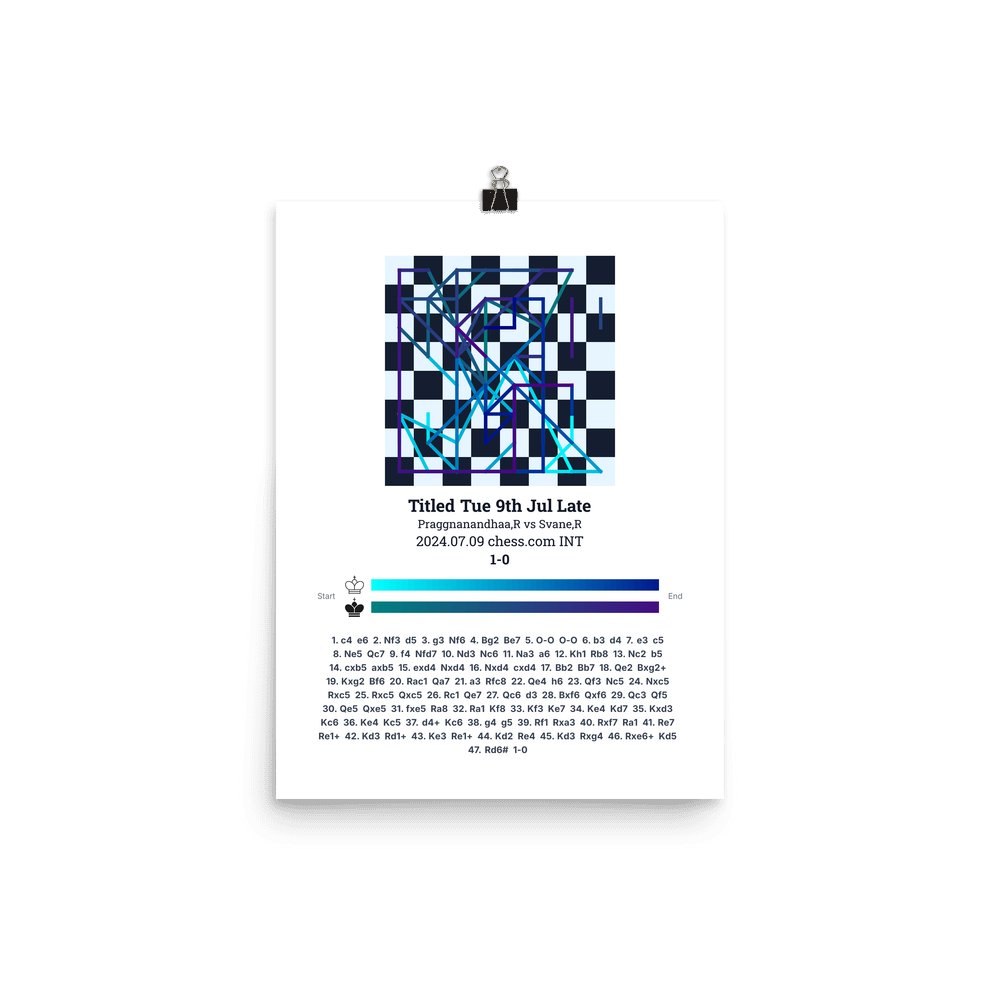 Museum-quality poster on thick, durable matte paper. A sharp, clean look for any chess visualisation.