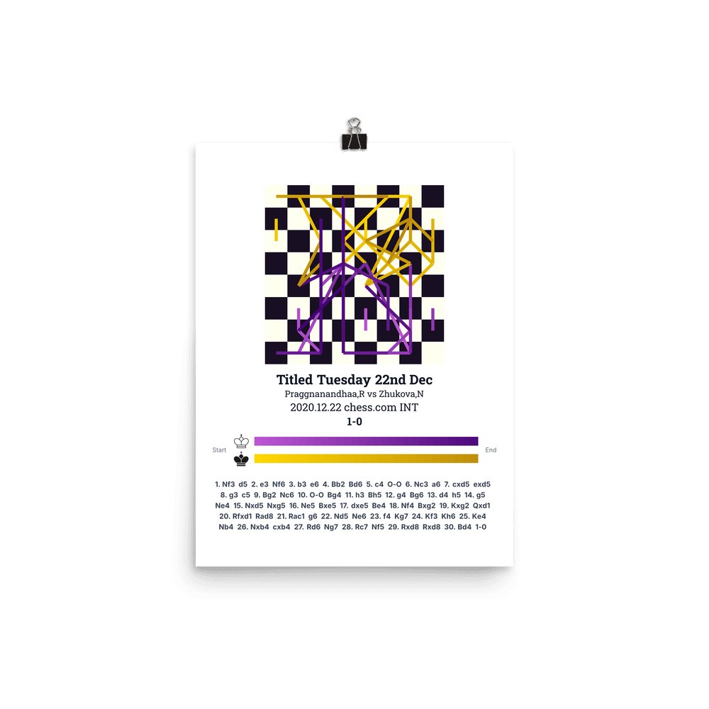 Museum-quality poster on thick, durable matte paper. A sharp, clean look for any chess visualisation.