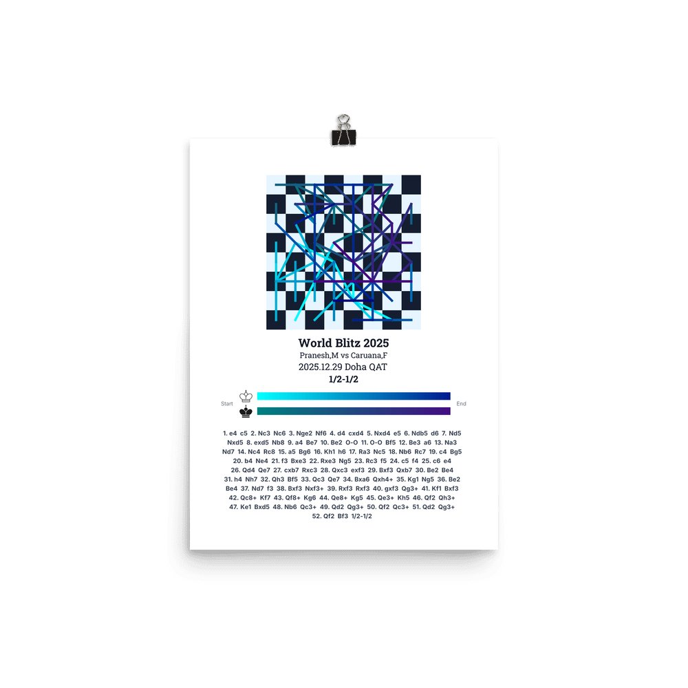 Museum-quality poster on thick, durable matte paper. A sharp, clean look for any chess visualisation.