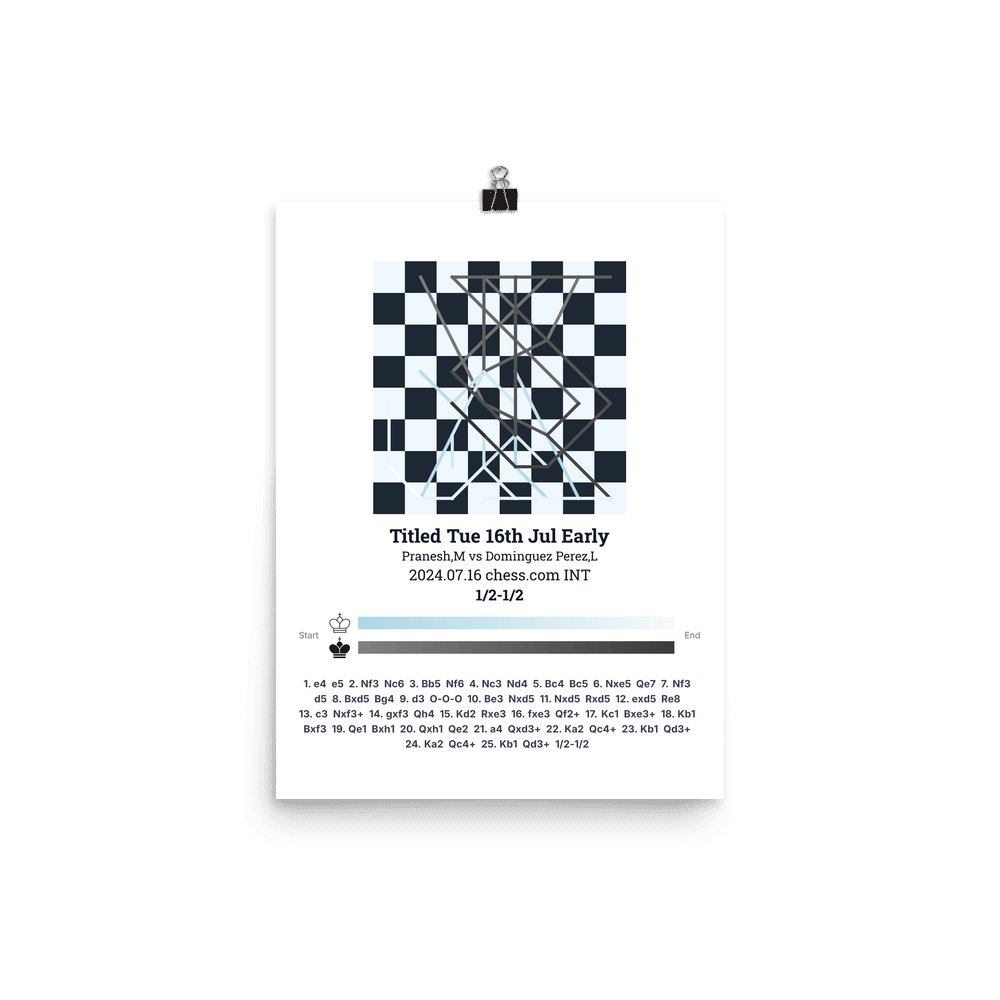 Museum-quality poster on thick, durable matte paper. A sharp, clean look for any chess visualisation.