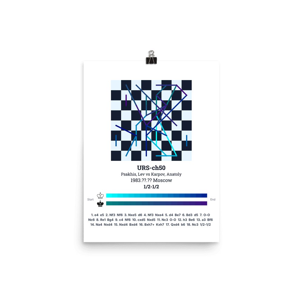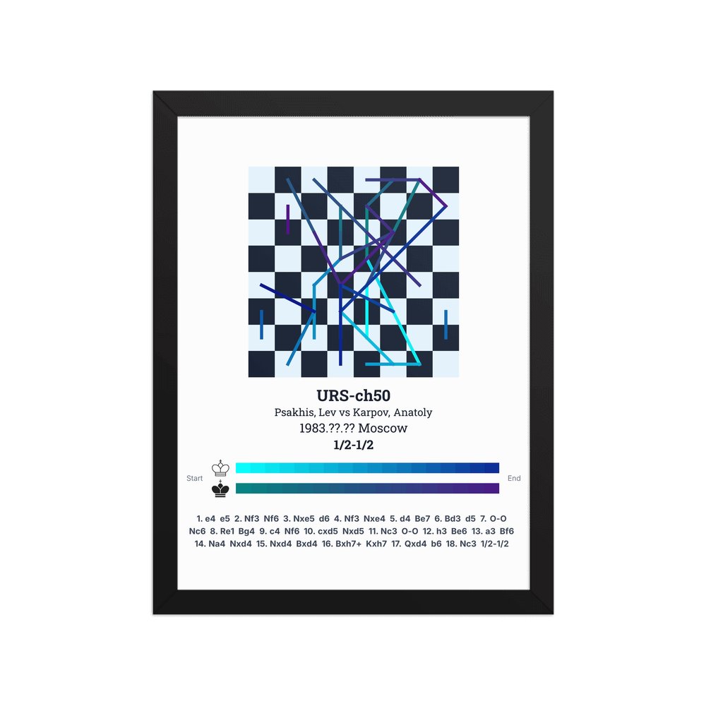 Museum-quality poster on thick, durable matte paper. A sharp, clean look for any chess visualisation.