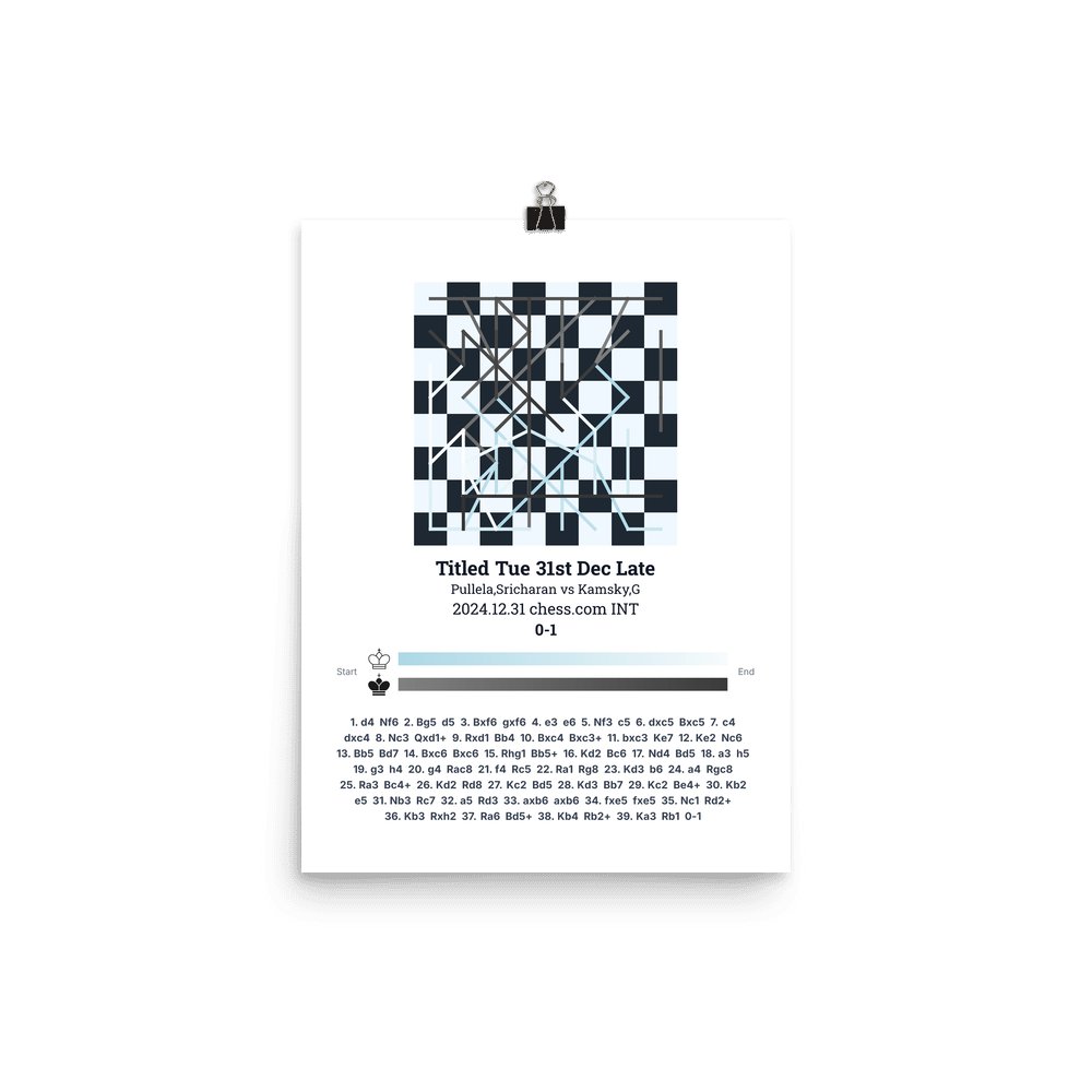 Museum-quality poster on thick, durable matte paper. A sharp, clean look for any chess visualisation.