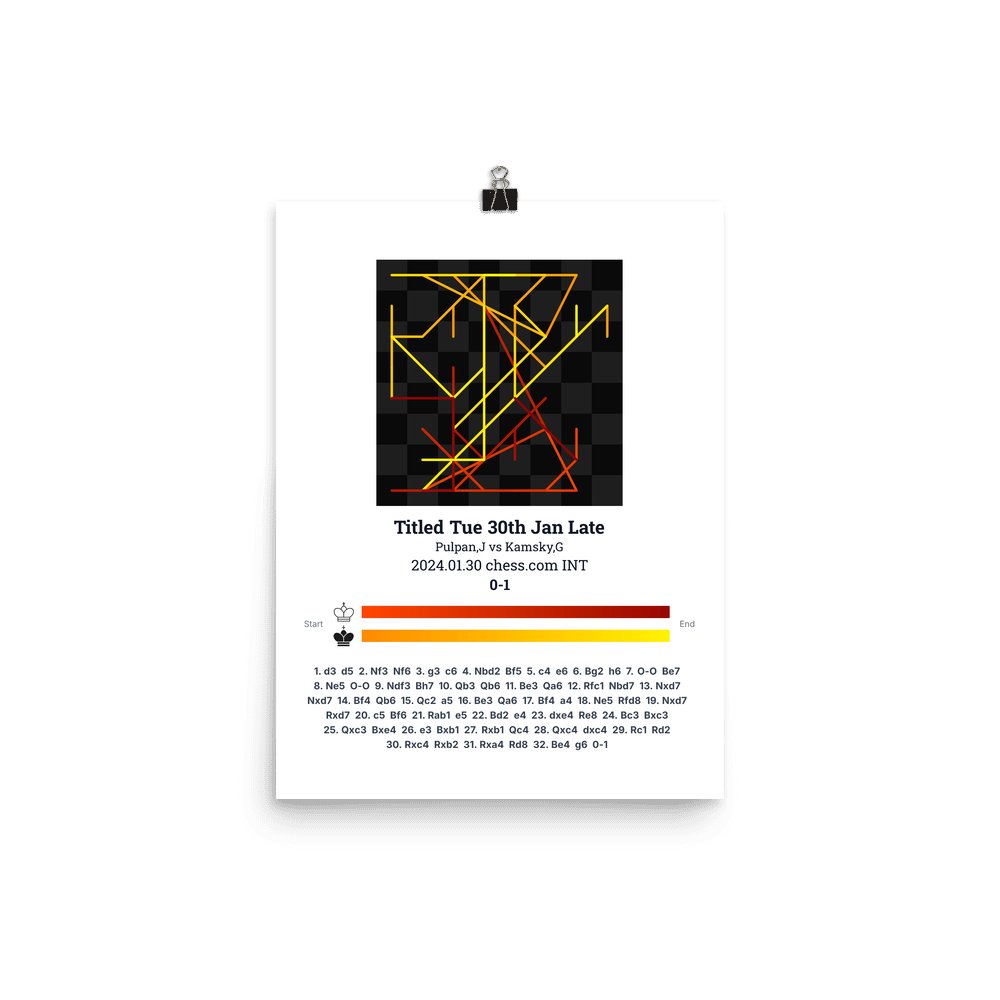 Museum-quality poster on thick, durable matte paper. A sharp, clean look for any chess visualisation.