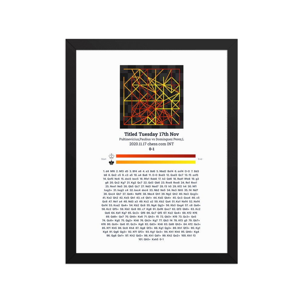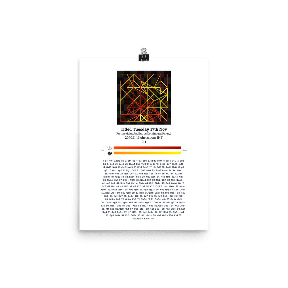Museum-quality poster on thick, durable matte paper. A sharp, clean look for any chess visualisation.