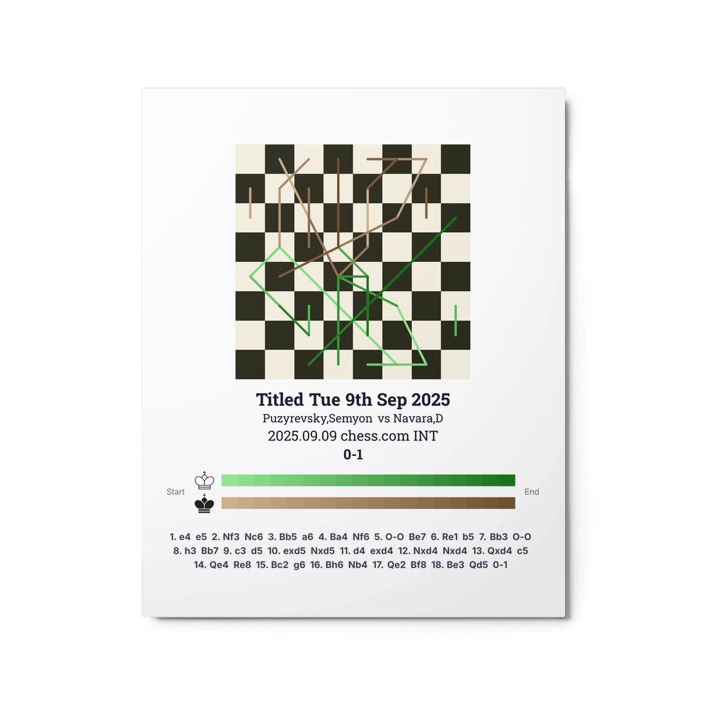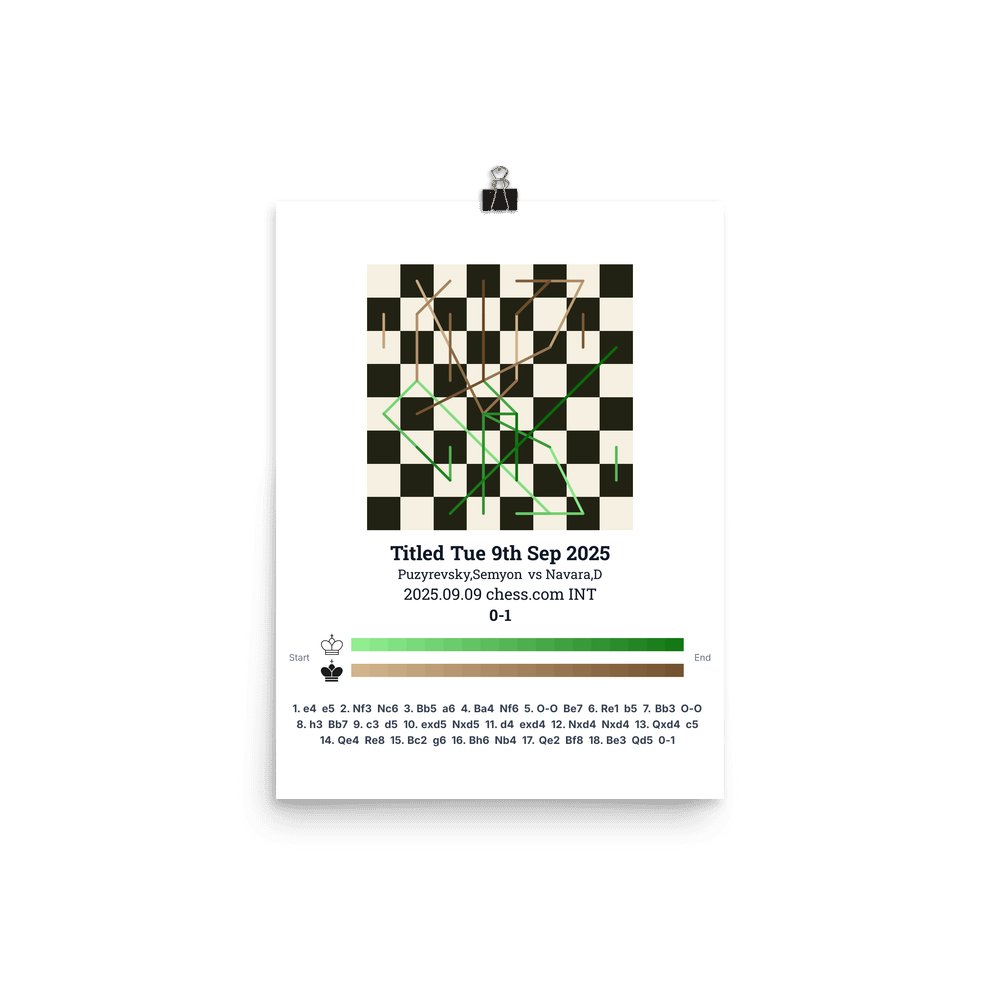 Museum-quality poster on thick, durable matte paper. A sharp, clean look for any chess visualisation.