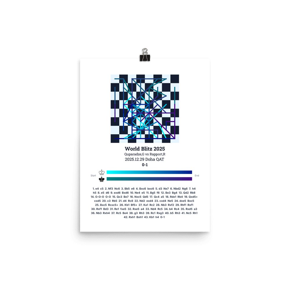 Museum-quality poster on thick, durable matte paper. A sharp, clean look for any chess visualisation.
