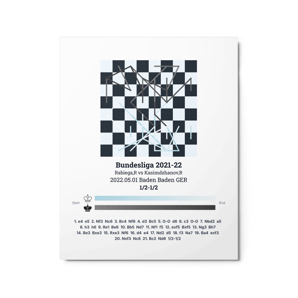 Museum-quality poster on thick, durable matte paper. A sharp, clean look for any chess visualisation.