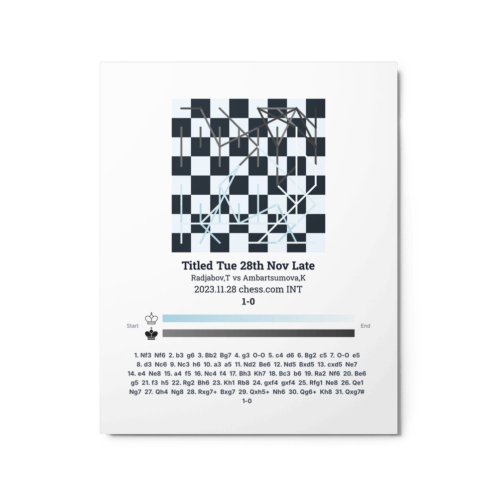 Museum-quality poster on thick, durable matte paper. A sharp, clean look for any chess visualisation.