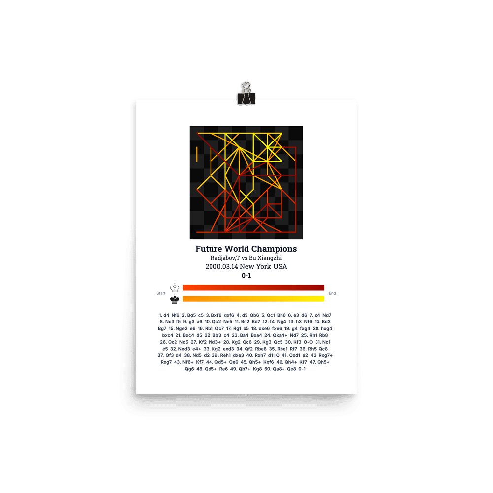 Museum-quality poster on thick, durable matte paper. A sharp, clean look for any chess visualisation.