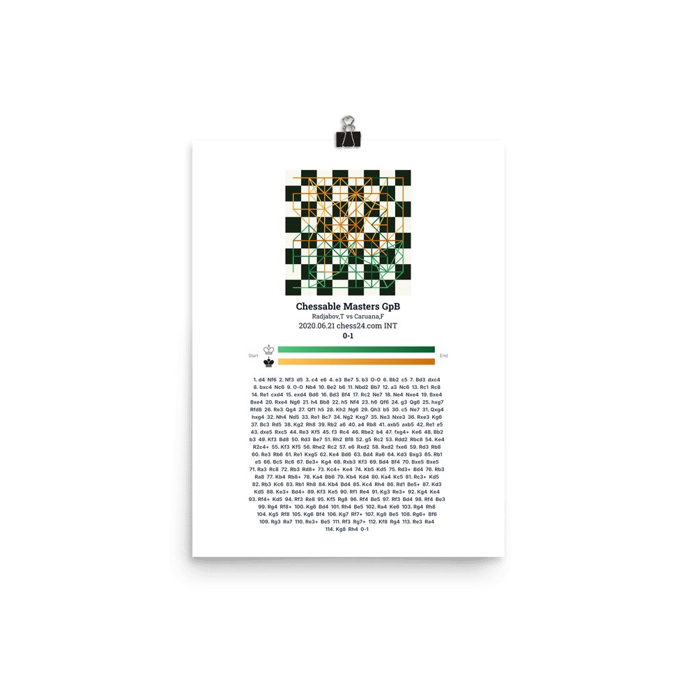 Museum-quality poster on thick, durable matte paper. A sharp, clean look for any chess visualisation.