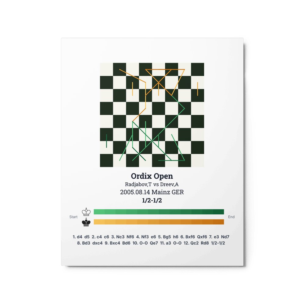 Museum-quality poster on thick, durable matte paper. A sharp, clean look for any chess visualisation.