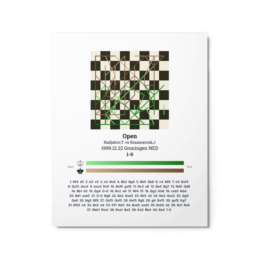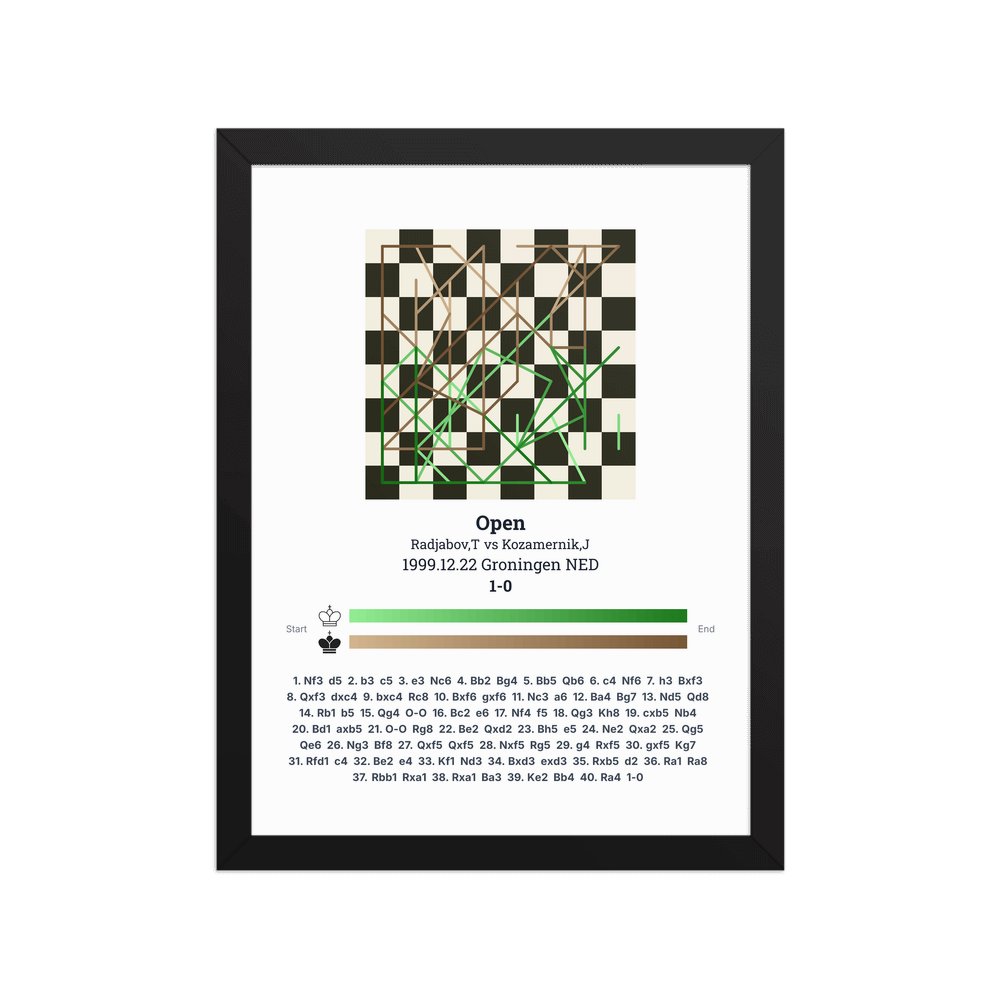 Museum-quality poster on thick, durable matte paper. A sharp, clean look for any chess visualisation.