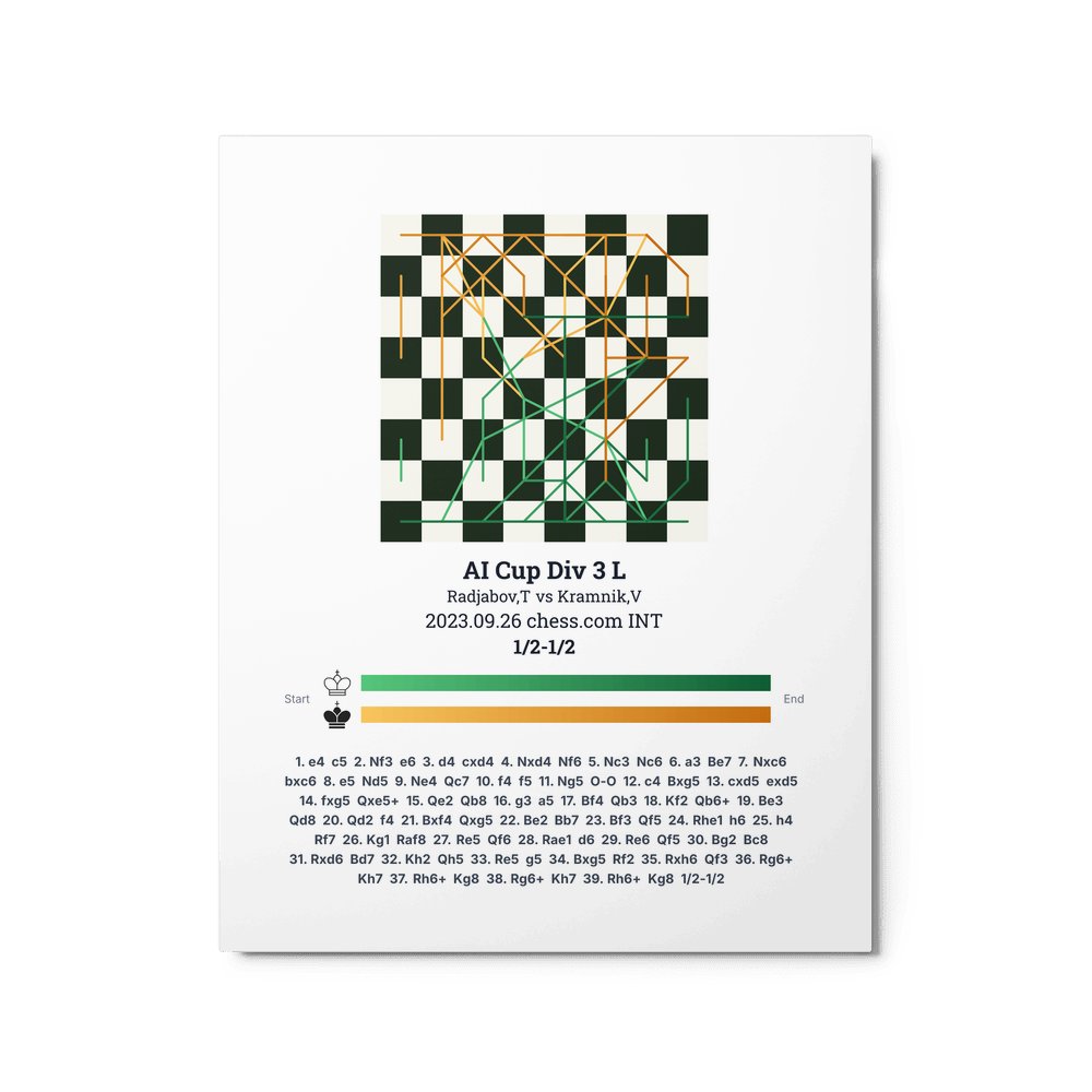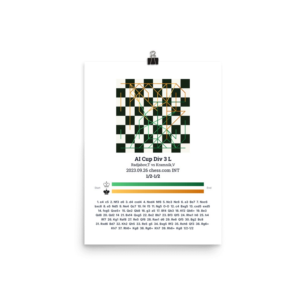 Museum-quality poster on thick, durable matte paper. A sharp, clean look for any chess visualisation.