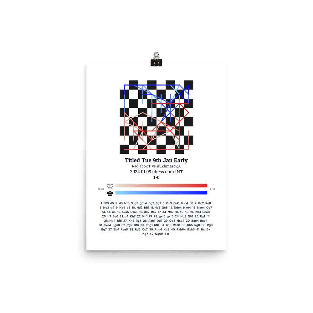 Museum-quality poster on thick, durable matte paper. A sharp, clean look for any chess visualisation.