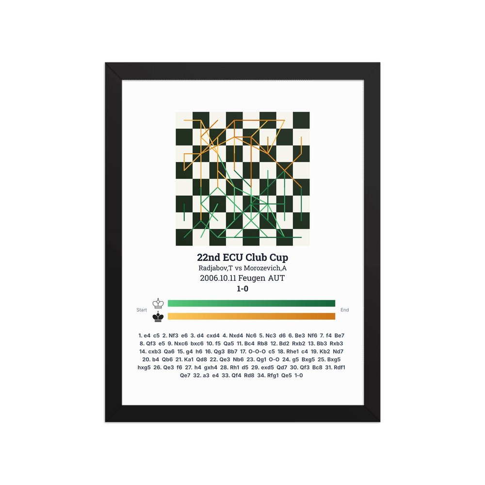 Museum-quality poster on thick, durable matte paper. A sharp, clean look for any chess visualisation.