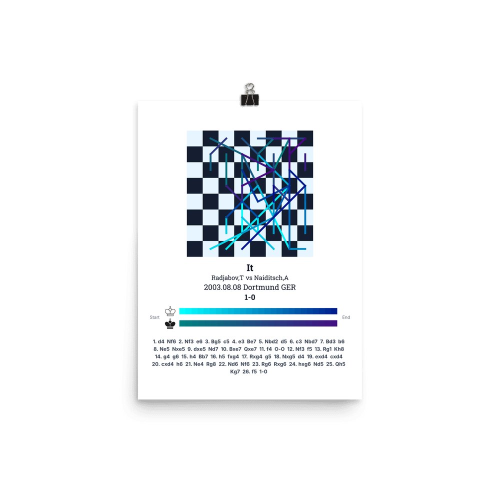 Museum-quality poster on thick, durable matte paper. A sharp, clean look for any chess visualisation.