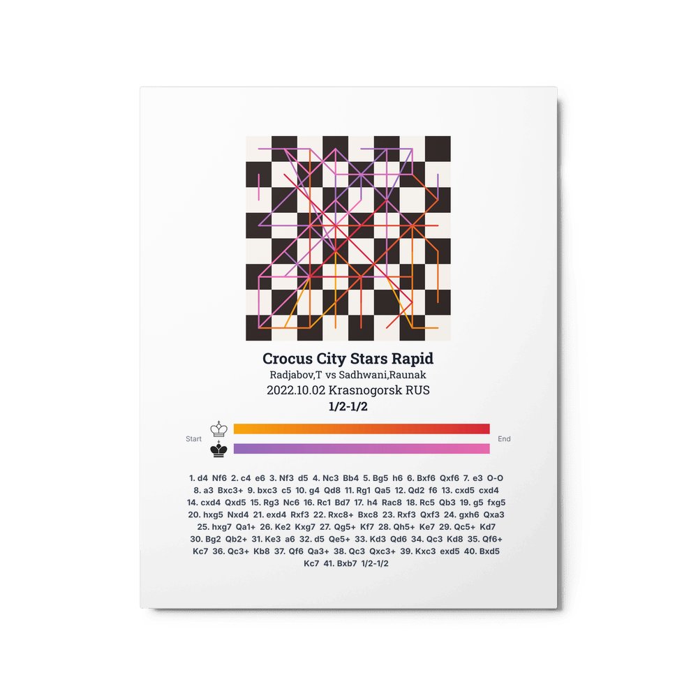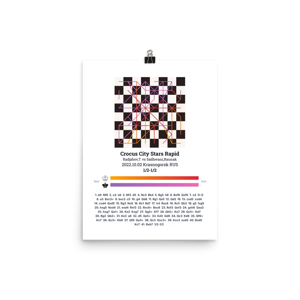 Museum-quality poster on thick, durable matte paper. A sharp, clean look for any chess visualisation.