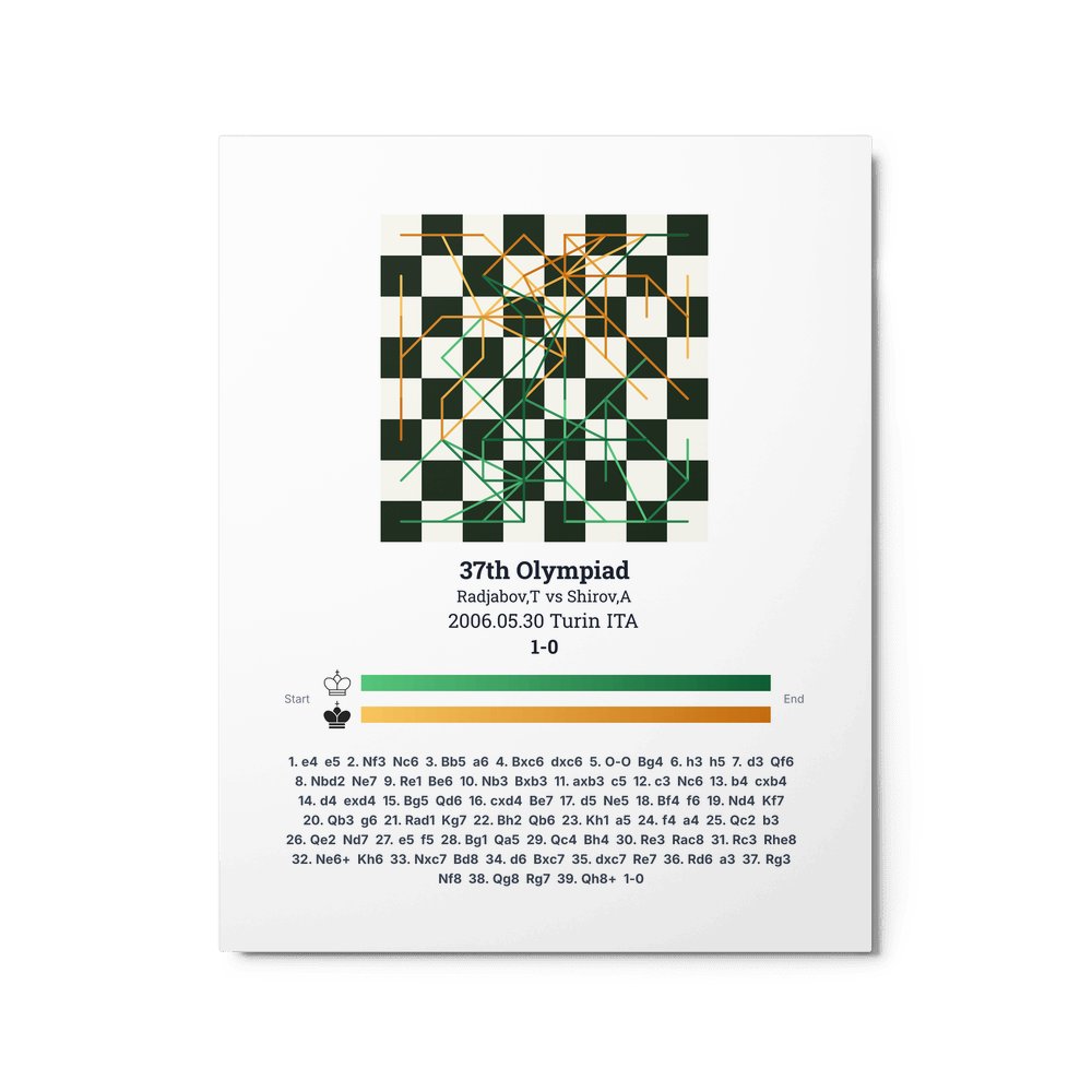 Museum-quality poster on thick, durable matte paper. A sharp, clean look for any chess visualisation.