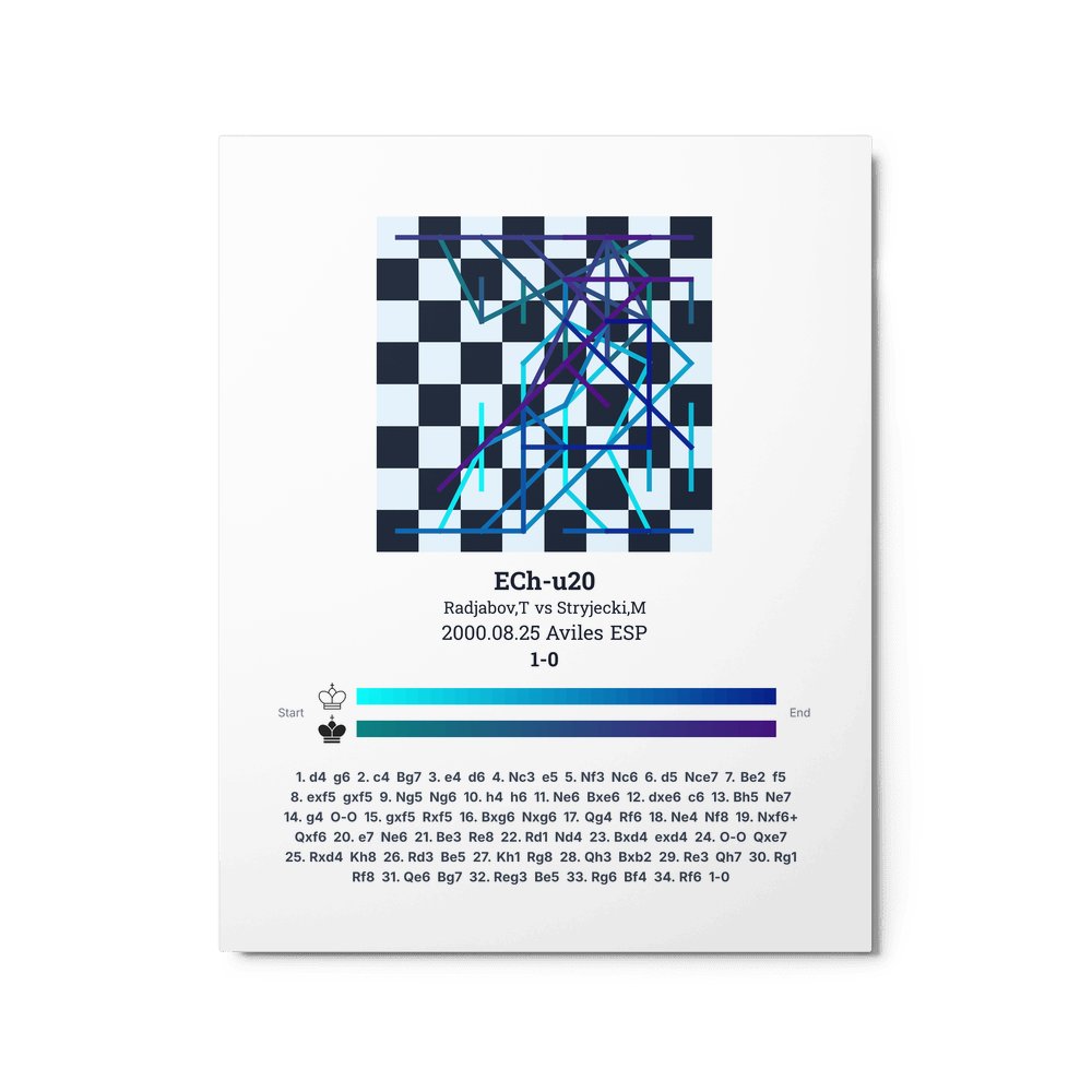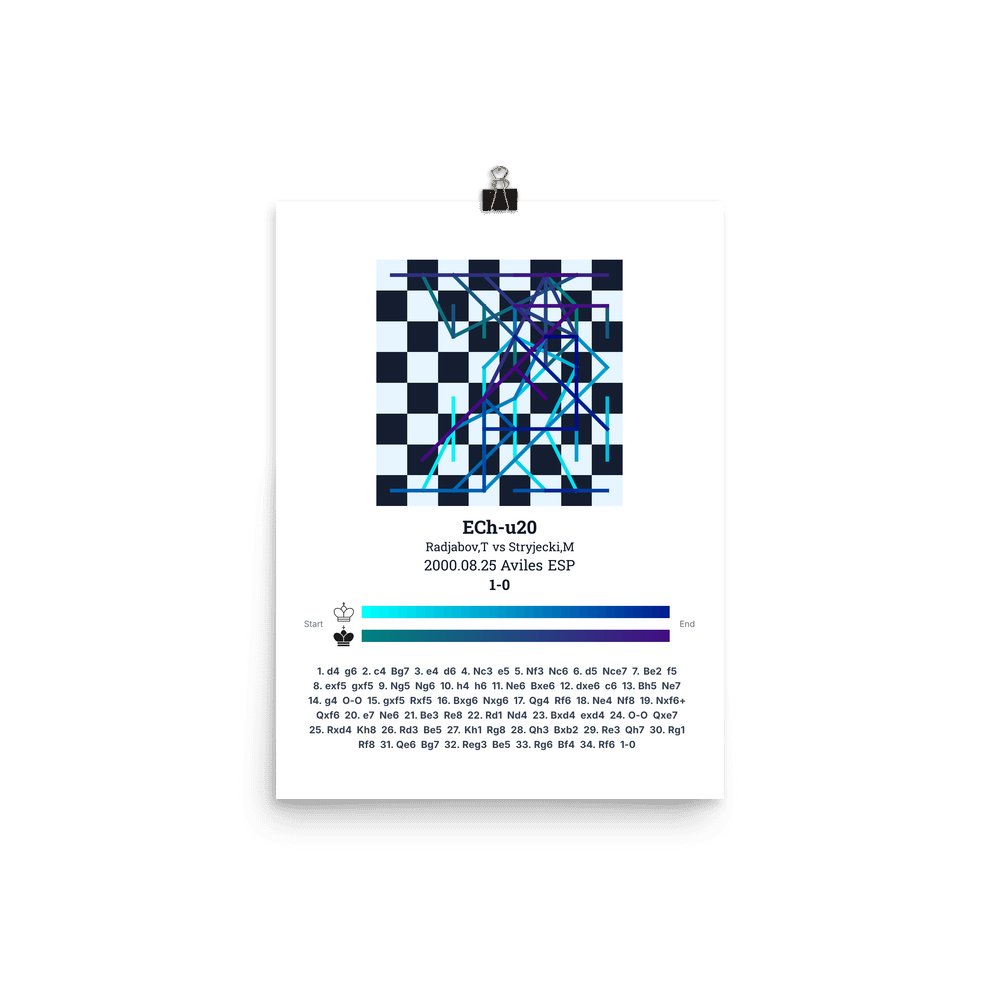 Museum-quality poster on thick, durable matte paper. A sharp, clean look for any chess visualisation.