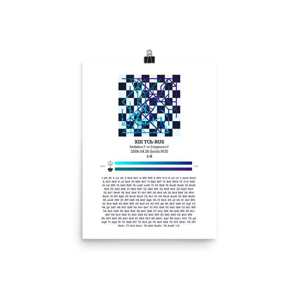 Museum-quality poster on thick, durable matte paper. A sharp, clean look for any chess visualisation.