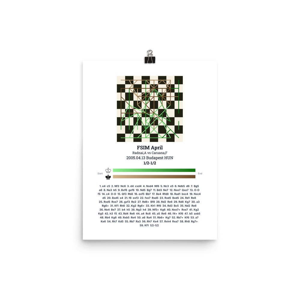 Museum-quality poster on thick, durable matte paper. A sharp, clean look for any chess visualisation.