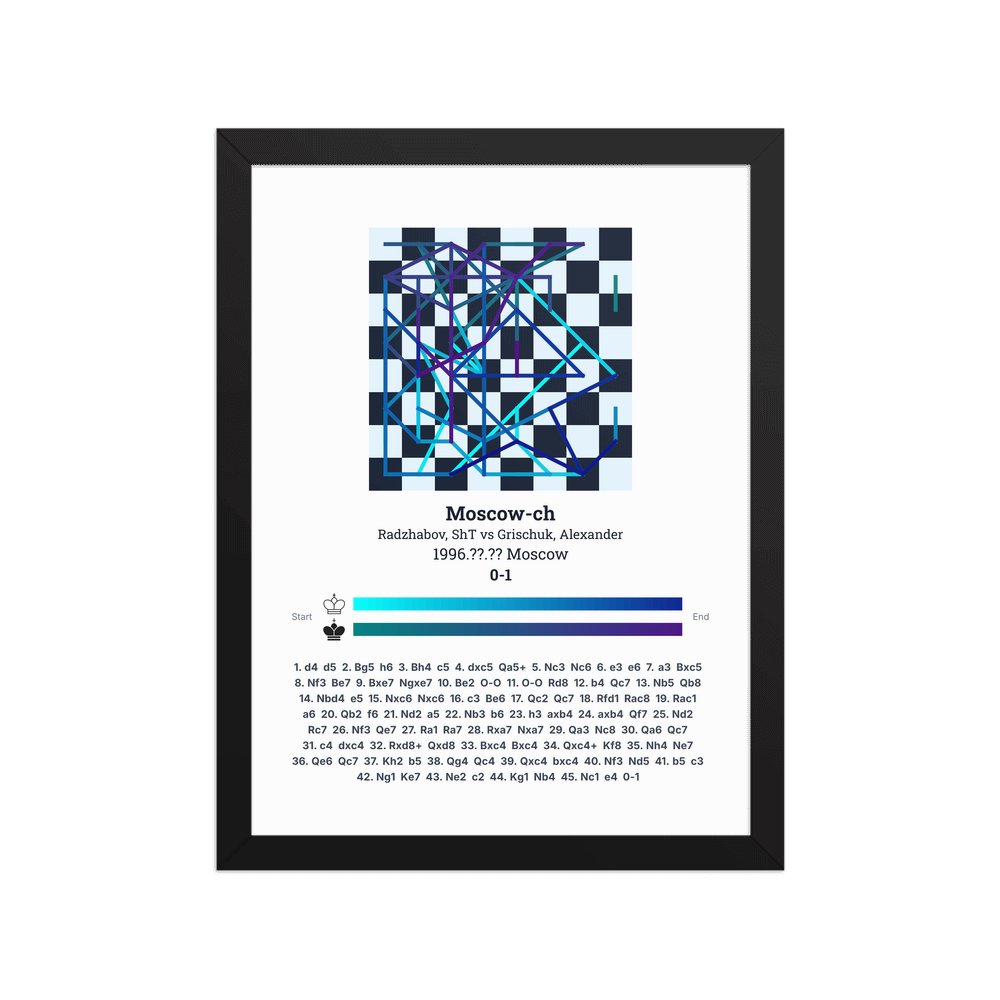 Museum-quality poster on thick, durable matte paper. A sharp, clean look for any chess visualisation.