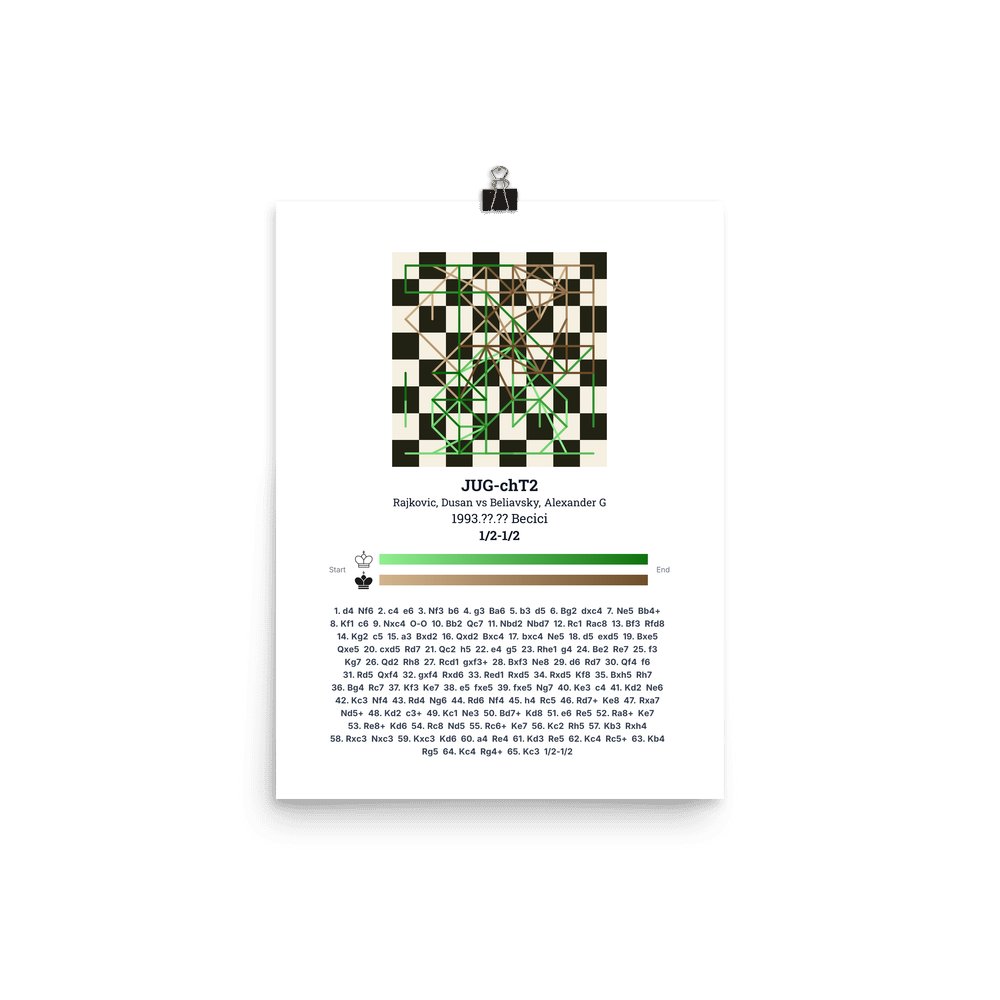 Museum-quality poster on thick, durable matte paper. A sharp, clean look for any chess visualisation.
