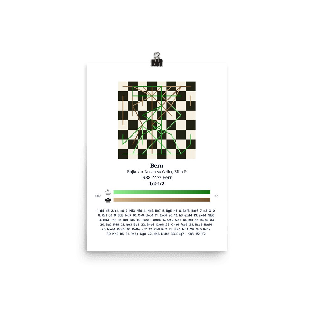 Museum-quality poster on thick, durable matte paper. A sharp, clean look for any chess visualisation.