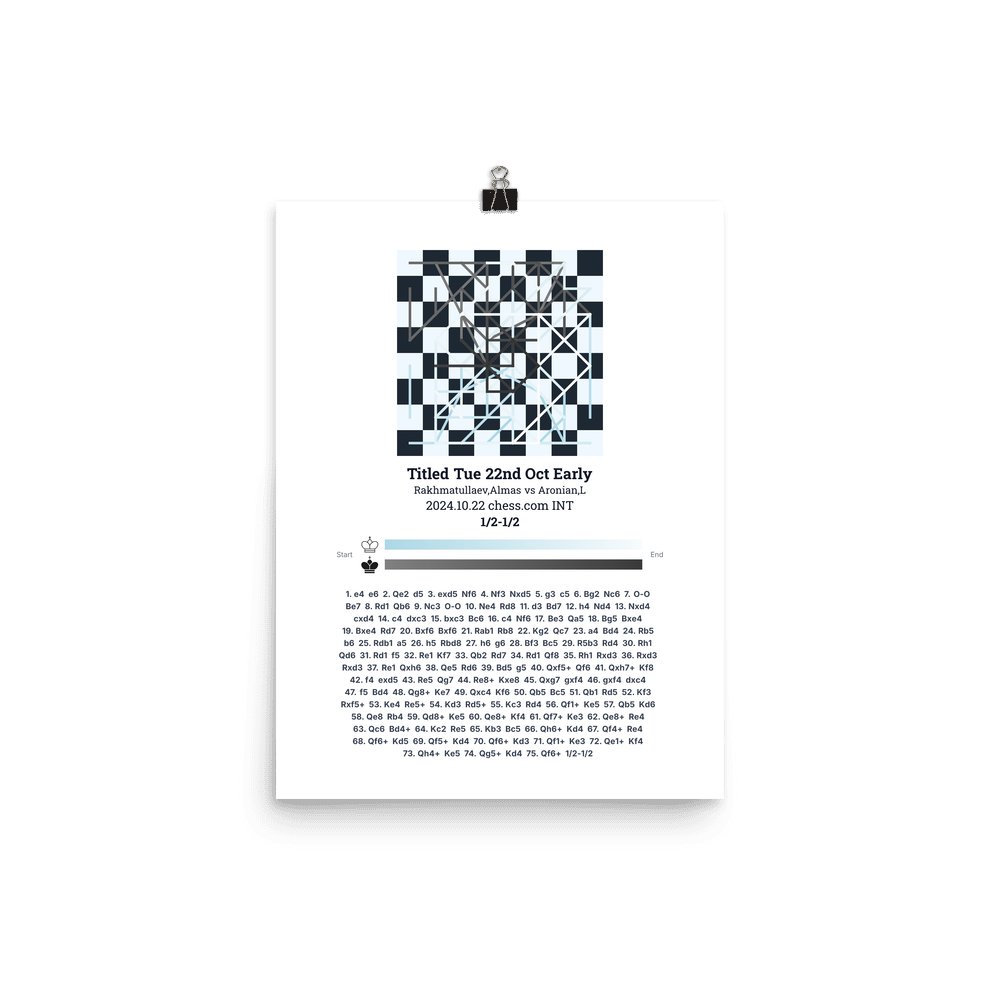 Museum-quality poster on thick, durable matte paper. A sharp, clean look for any chess visualisation.
