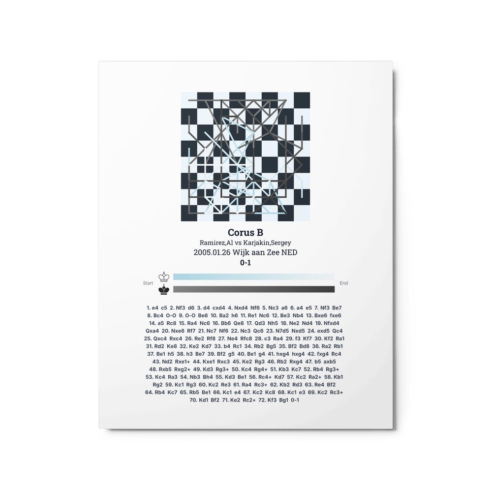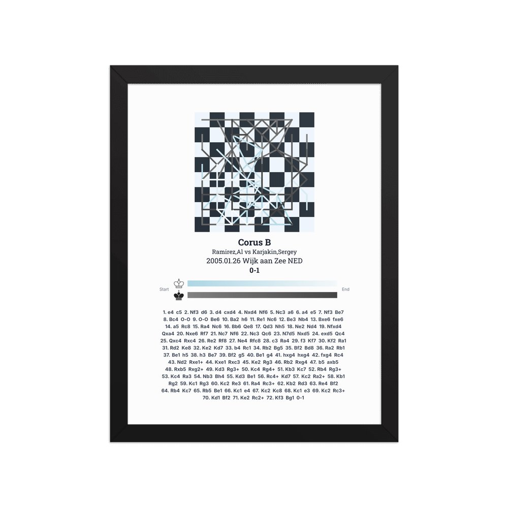 Museum-quality poster on thick, durable matte paper. A sharp, clean look for any chess visualisation.