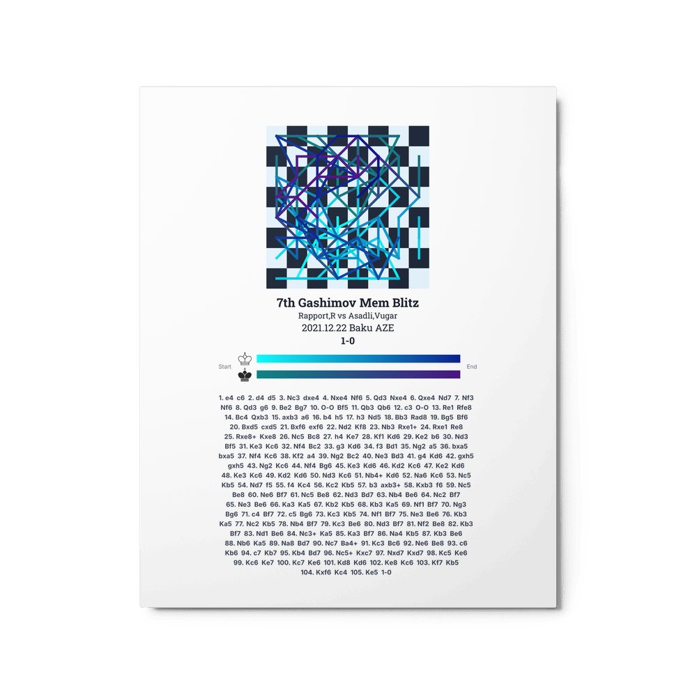 Museum-quality poster on thick, durable matte paper. A sharp, clean look for any chess visualisation.