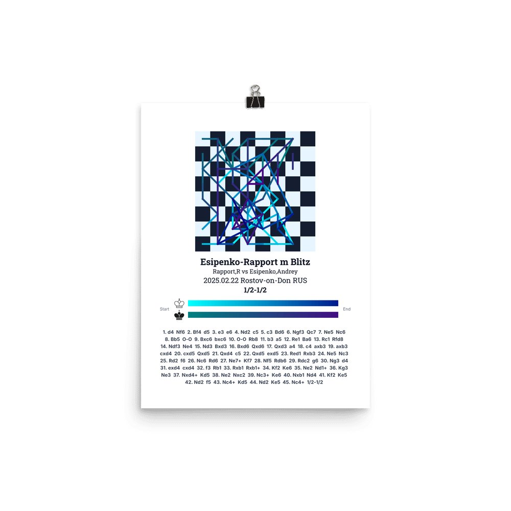Museum-quality poster on thick, durable matte paper. A sharp, clean look for any chess visualisation.