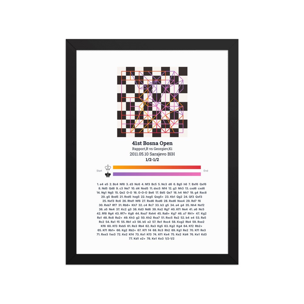 Museum-quality poster on thick, durable matte paper. A sharp, clean look for any chess visualisation.