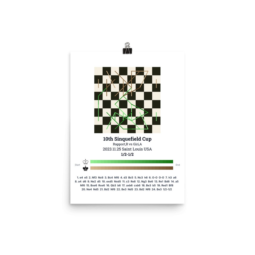 Museum-quality poster on thick, durable matte paper. A sharp, clean look for any chess visualisation.