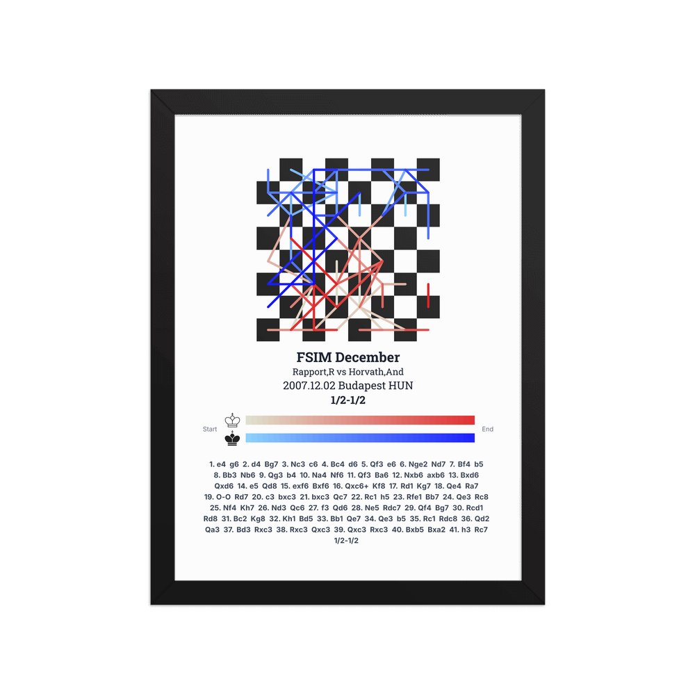 Museum-quality poster on thick, durable matte paper. A sharp, clean look for any chess visualisation.