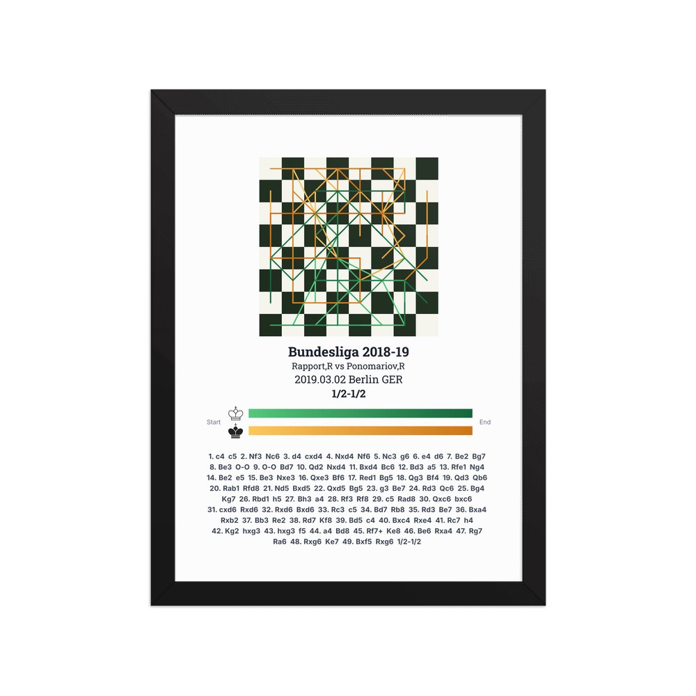 Museum-quality poster on thick, durable matte paper. A sharp, clean look for any chess visualisation.
