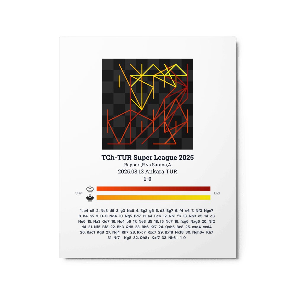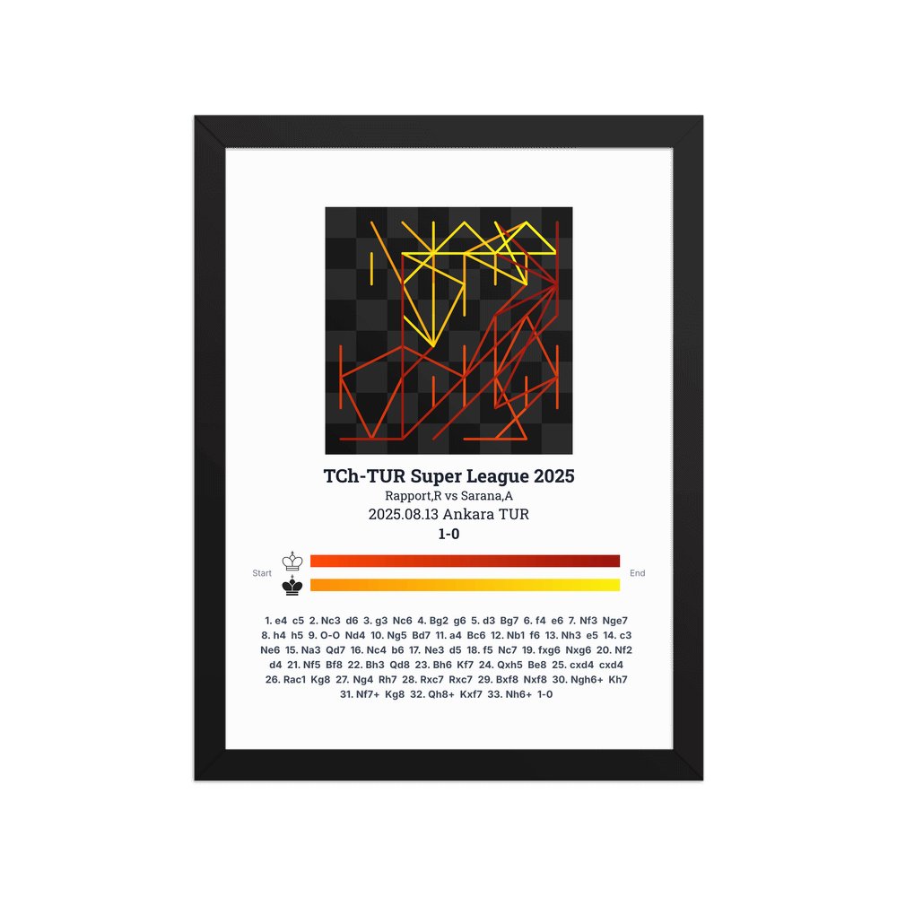 Museum-quality poster on thick, durable matte paper. A sharp, clean look for any chess visualisation.