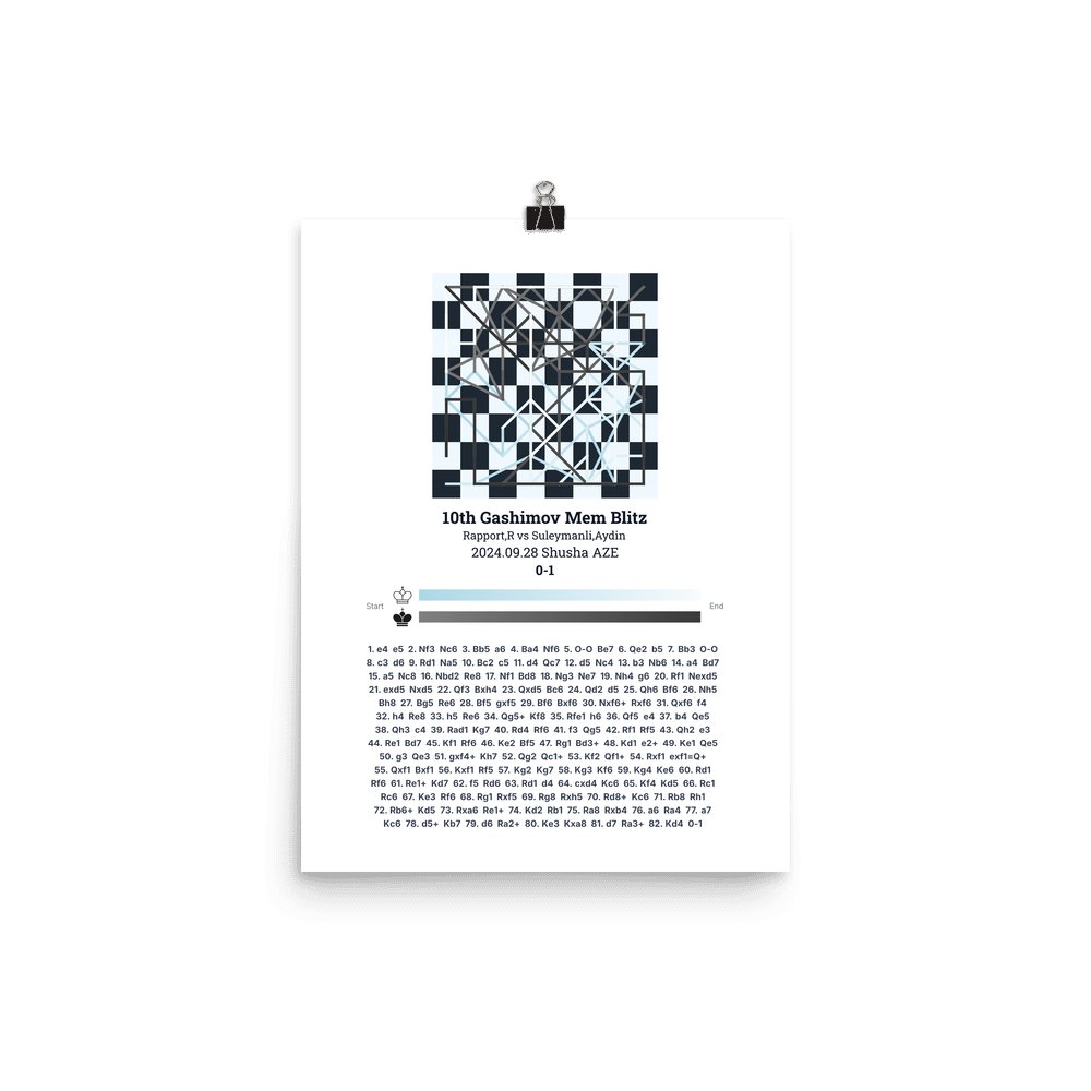 Museum-quality poster on thick, durable matte paper. A sharp, clean look for any chess visualisation.