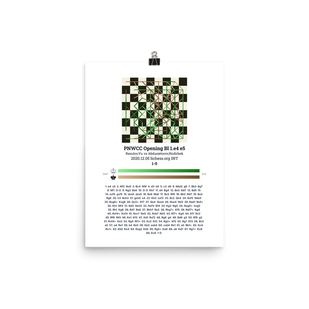Museum-quality poster on thick, durable matte paper. A sharp, clean look for any chess visualisation.