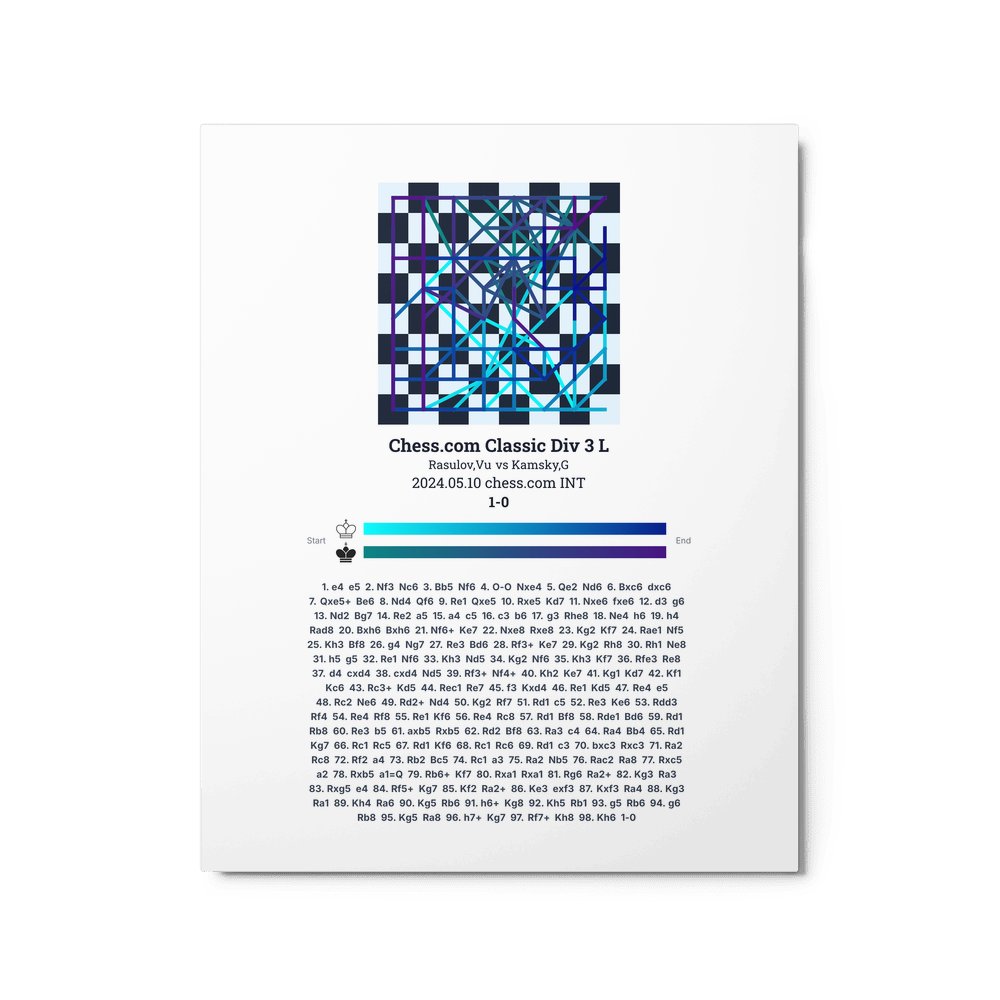 Museum-quality poster on thick, durable matte paper. A sharp, clean look for any chess visualisation.