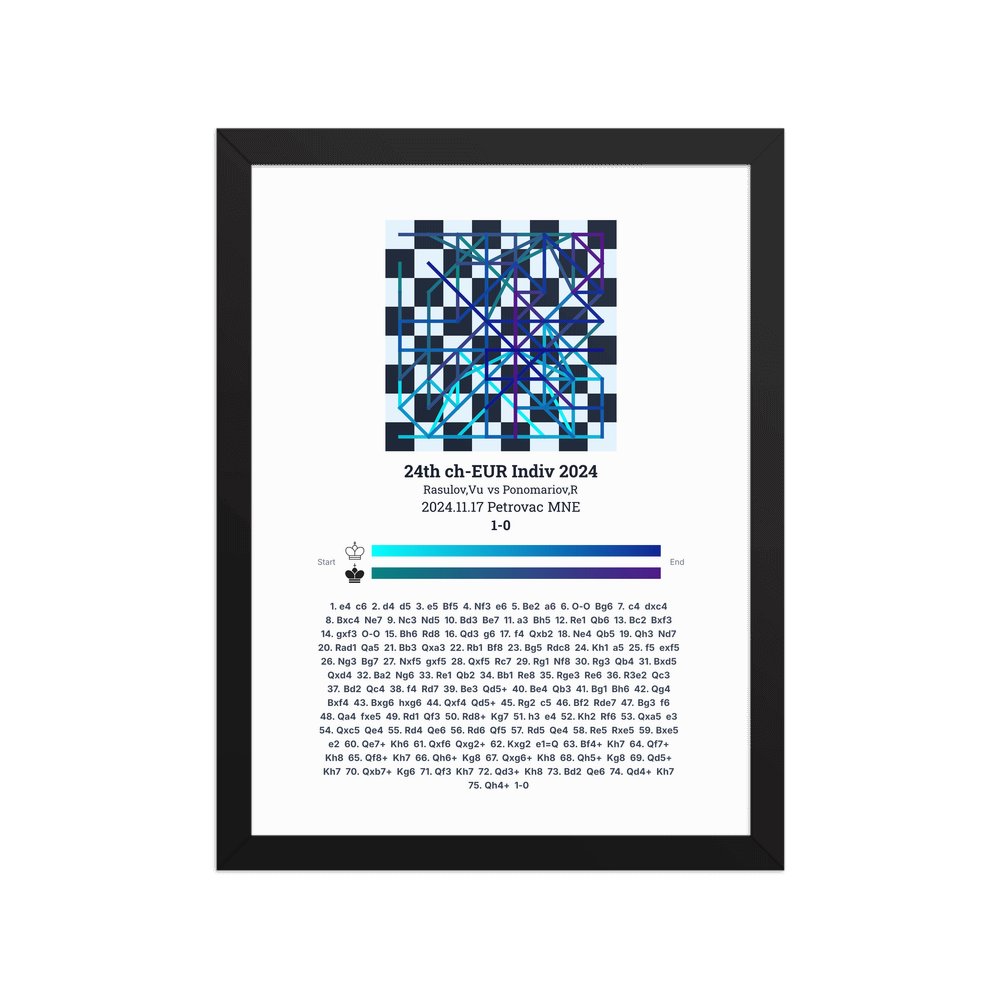 Museum-quality poster on thick, durable matte paper. A sharp, clean look for any chess visualisation.