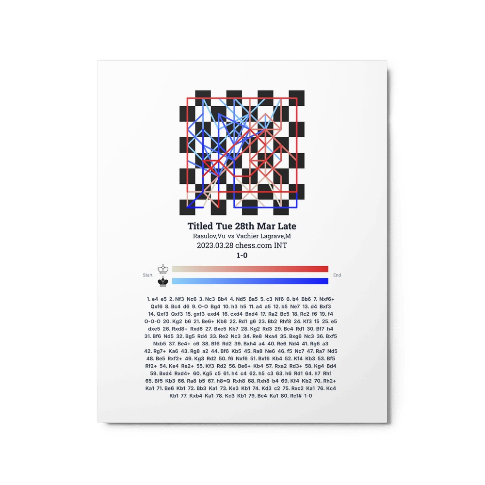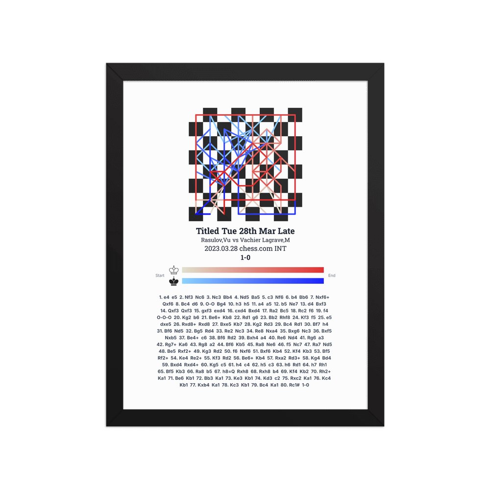 Museum-quality poster on thick, durable matte paper. A sharp, clean look for any chess visualisation.