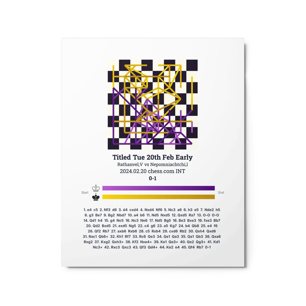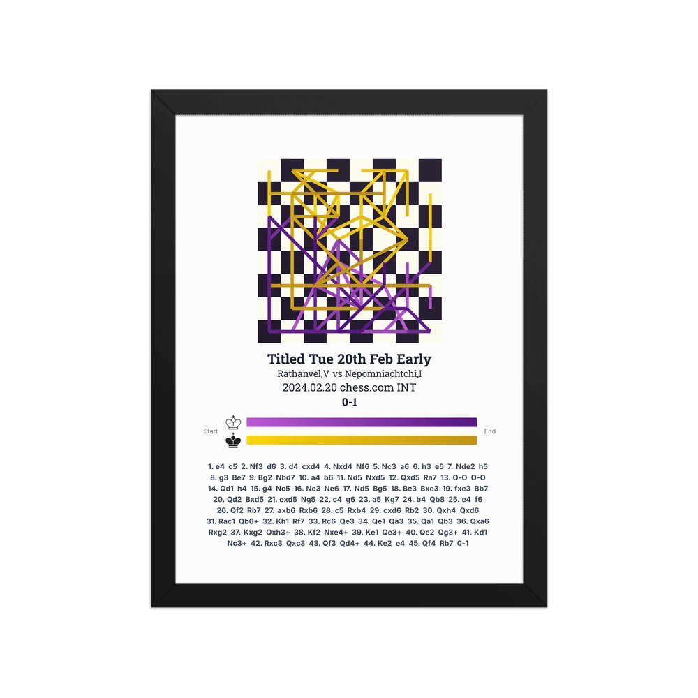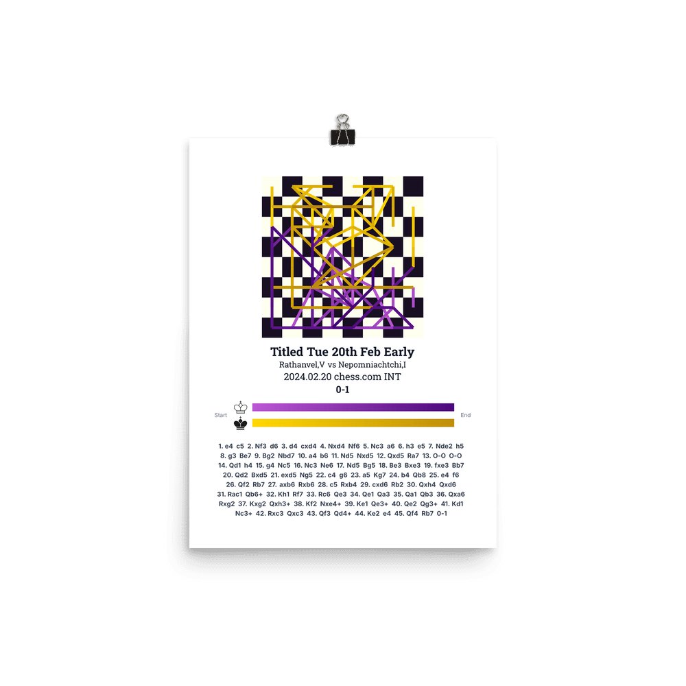 Museum-quality poster on thick, durable matte paper. A sharp, clean look for any chess visualisation.