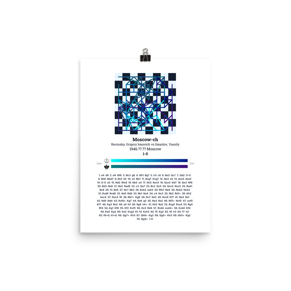 Museum-quality poster on thick, durable matte paper. A sharp, clean look for any chess visualisation.