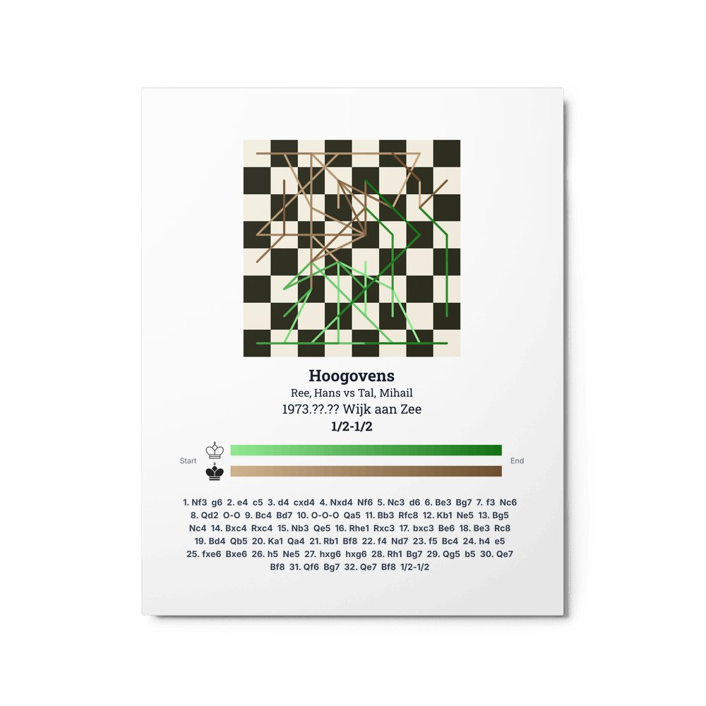Museum-quality poster on thick, durable matte paper. A sharp, clean look for any chess visualisation.