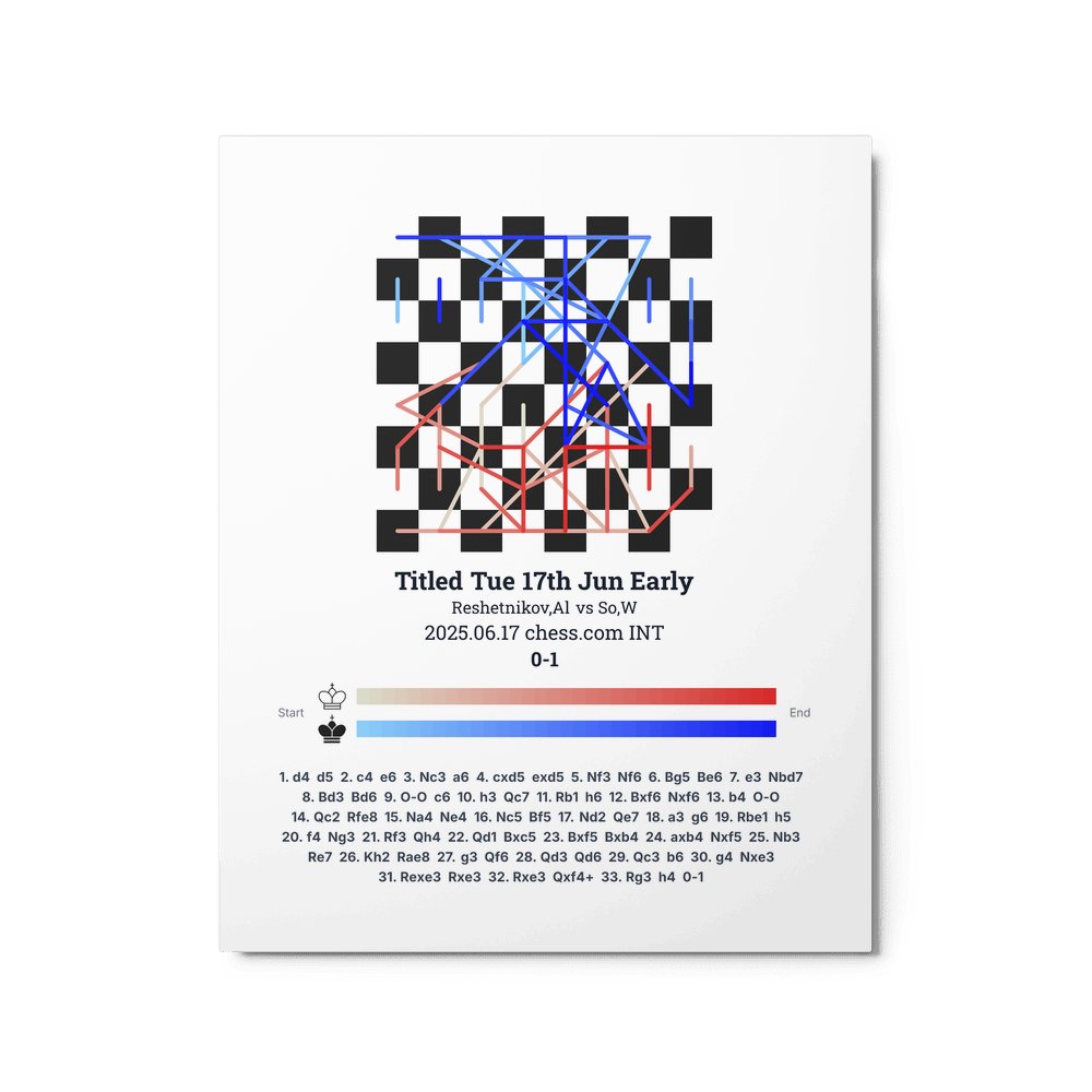 Museum-quality poster on thick, durable matte paper. A sharp, clean look for any chess visualisation.