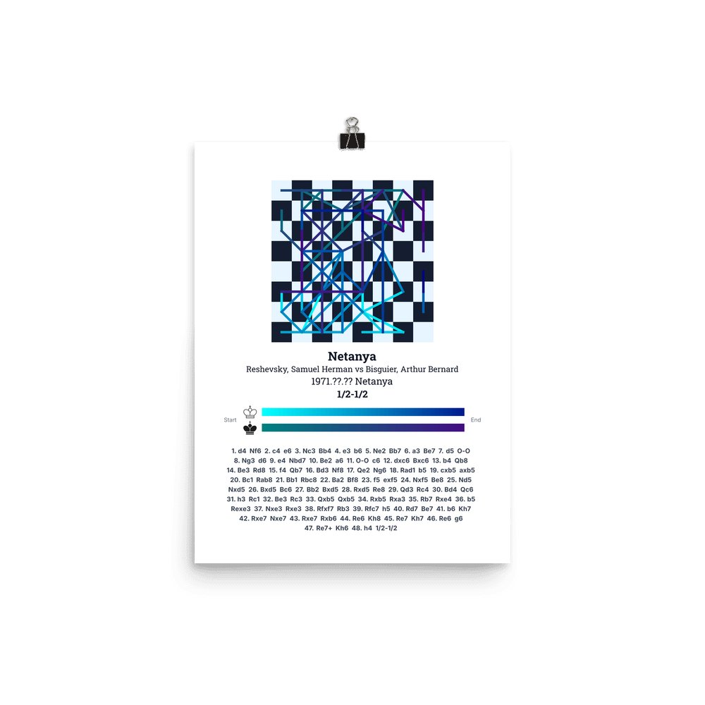 Museum-quality poster on thick, durable matte paper. A sharp, clean look for any chess visualisation.