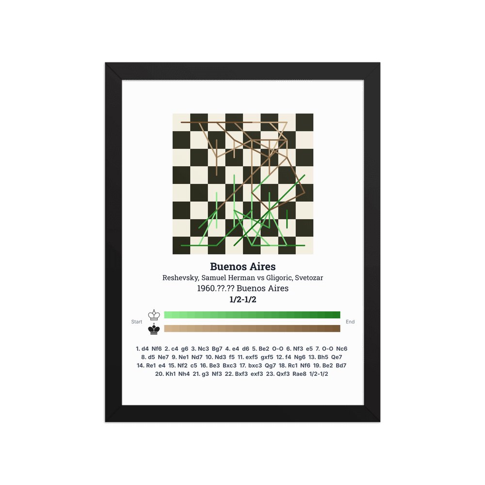 Museum-quality poster on thick, durable matte paper. A sharp, clean look for any chess visualisation.