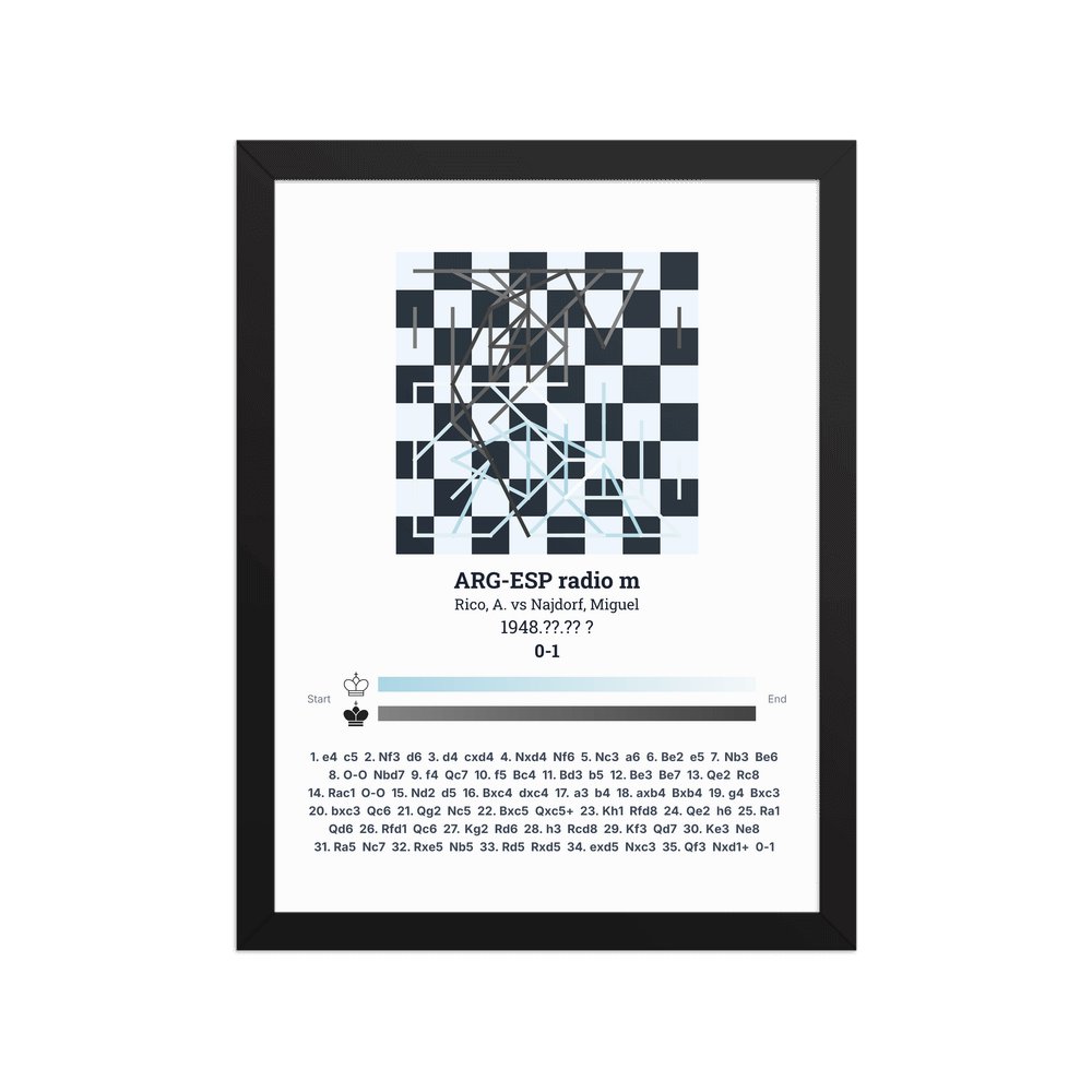 Museum-quality poster on thick, durable matte paper. A sharp, clean look for any chess visualisation.